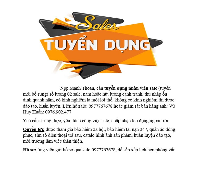NHÀ PHÂN PHỐI MẠNH THOAN TUYỂN DỤNG NHÂN SỰ
